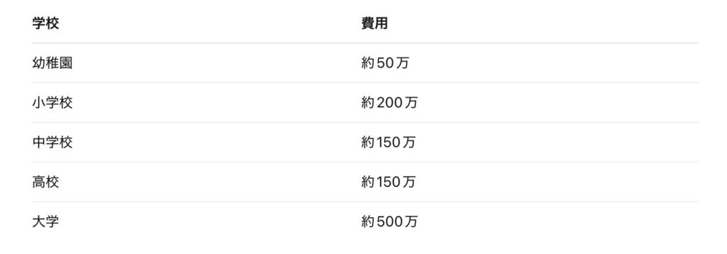 教育費が高くなる理由は以下です。
